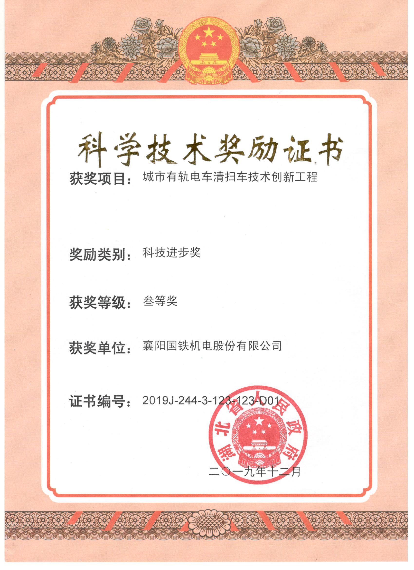 湖北省科技進(jìn)步三等獎 城市有軌電車清掃車