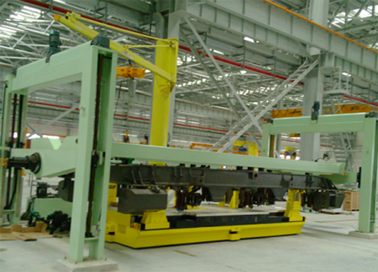 構架翻轉架機是車輛段與綜合基地檢修主廠房轉向架檢測間內的配套設備,用于轉向架構架的翻轉作業(yè),設備安裝在轉向架檢修線上。