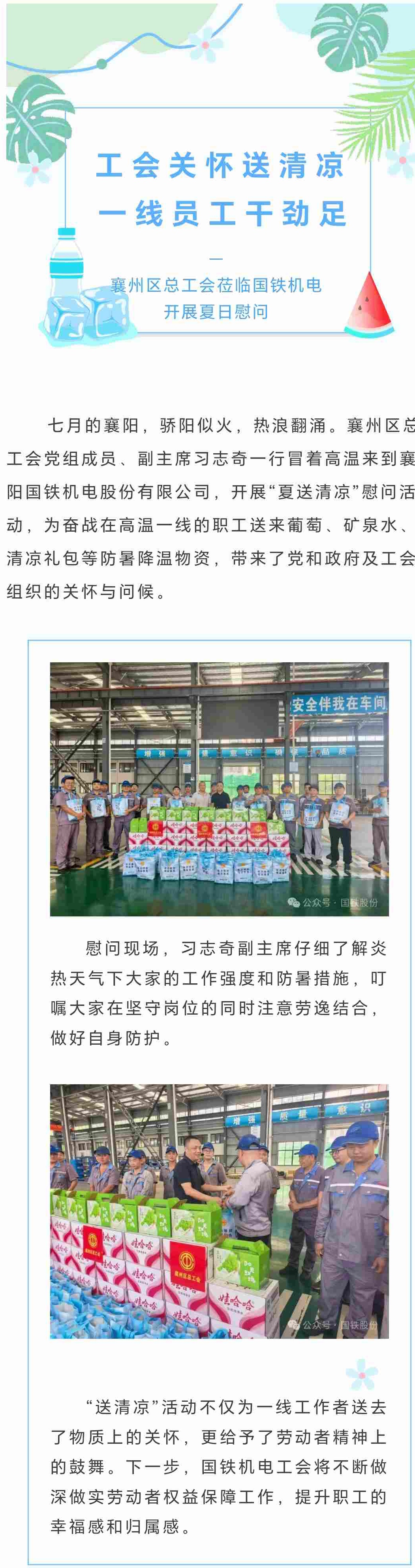 夏日送清涼 關(guān)愛沁人心!襄州區(qū)總工會(huì)蒞臨國(guó)鐵機(jī)電開展夏日慰問
