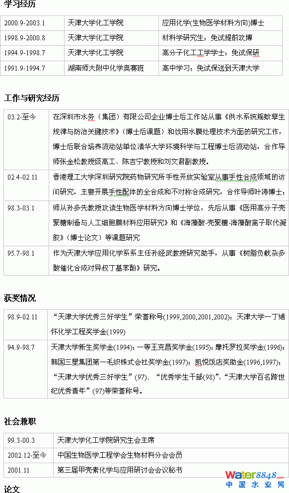 9. 孫多先,陳益清,呂景輝,王強,劉珺. 海藻酸-殼聚糖-海藻酸離子取代凝膠離子取代性能,分析化學, 2003, 31(6):739-741(SCI)