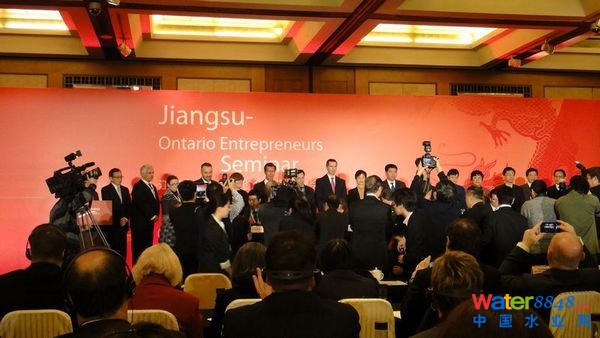 我院4名代表赴南京參加江蘇-安大略省企業(yè)家洽談會。安大略省代表團由省長麥堅迪親自率隊,加拿大安大略省38家農(nóng)業(yè)食品、綠色建筑、水處理領(lǐng)域龍頭企業(yè)訪問江蘇,我省有500家企業(yè)和科研院所代表參加了此次洽談會,我院與Echologics公司、Ecolo異味控制技術(shù)公司、弗萊明另類污水處理中心、多倫多大學(xué)等大家大型國際公司與院校進行了深入的交流和討論。