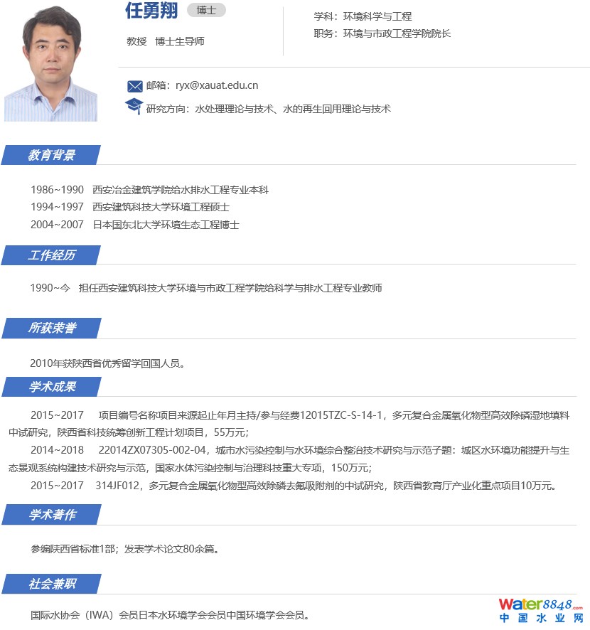 任勇翔----西安建筑科技大學環(huán)境與市政工程學院教授 博士生導師