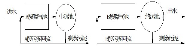 A-B法是吸附—生物降解法(Adsorption Bio-degradation)的簡稱,是德國亞琛大學Bbohnke教授于二十世紀七十年代中期開發(fā)的一種工藝,其生物反應(yīng)池由A段和B段二級活性污泥系統(tǒng)串聯(lián)而成,A段和B段分別具有獨立的污泥回流系統(tǒng)。該工藝不設(shè)初沉池,但其A段對SS及BOD的去除率大大高于初沉池。A段負荷高,曝氣時間短,維持在極高的負荷下運行,使微生物處于快速增長期以發(fā)揮其對有機物的快速吸附作用;B段維持在較低的負荷下運行,利用長世代期微生物的作用,保持出水水質(zhì)。