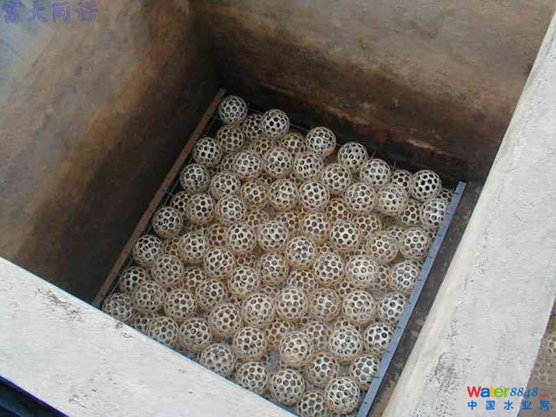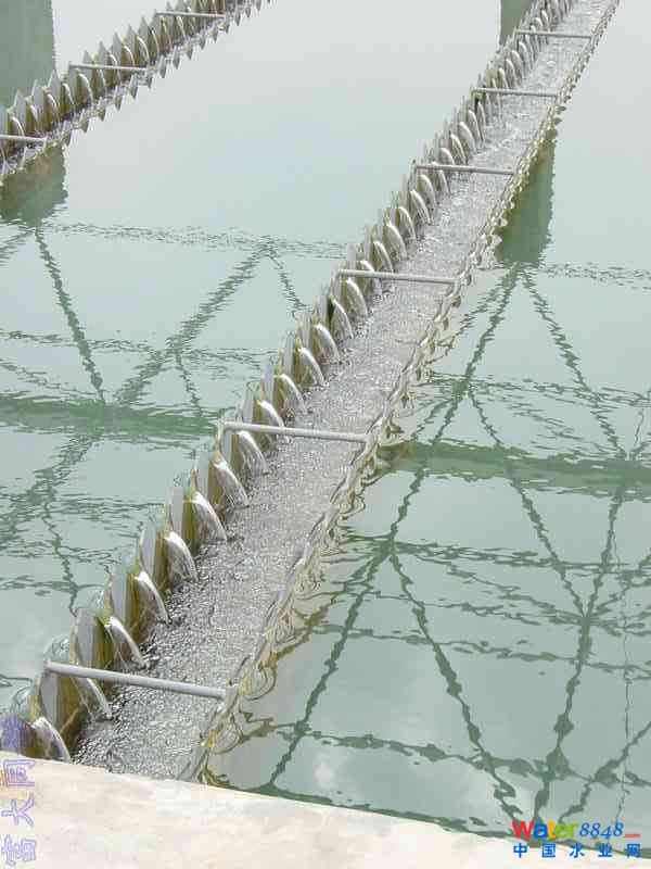 (2)產(chǎn)水量提高后,原絮凝池前2-3格易發(fā)生溢水,將部分池體加高0.5m;沉淀池只對(duì)其出水渠擴(kuò)大淹沒(méi)孔口;濾池基本不動(dòng);然后絮凝池內(nèi)投入按水廠設(shè)計(jì)規(guī)模計(jì)算好開(kāi)孔比的渦流絮凝器。