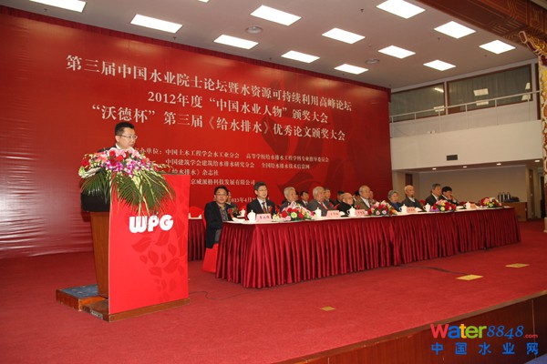 黨的十八大明確提出要改善民生、建設(shè)生態(tài)文明和美麗中國,而水的問題已成為我國最大的民生問題和生態(tài)文明建設(shè)最大的挑戰(zhàn)。水資源可持續(xù)利用是經(jīng)濟(jì)建設(shè)發(fā)展的根本前提,也是生態(tài)文明建設(shè)的先決條件。基于此,一年一度的水業(yè)“三會”——第三屆中國水業(yè)院士論壇暨水資源可持續(xù)利用高峰論壇,2012年度“中國水業(yè)人物”頒獎(jiǎng)大會,“沃德杯”第三屆《給水排水》優(yōu)秀論文頒獎(jiǎng)大會——于2013年4月27日至28日在北京友誼賓館隆重召開。