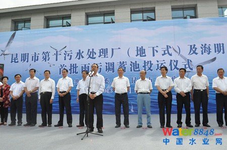投運(yùn)儀式上,碧水源董事長(zhǎng)文劍平代表項(xiàng)目的BT投資方致辭,他指出,昆明市第十污水處理廠技術(shù)先進(jìn)、工藝復(fù)雜、施工難度大,是創(chuàng)新和智慧的結(jié)晶,為加強(qiáng)城市基礎(chǔ)設(shè)施建設(shè)、協(xié)調(diào)廠區(qū)周邊城市生活環(huán)境及周圍居民關(guān)系提供了有效的解決方案。同時(shí),污水廠建在地下,節(jié)約土地,占地面積僅是傳統(tǒng)工藝用地的34%,針對(duì)解決城市土地緊張具有很好的示范意義。另外,污水廠采用國(guó)際先進(jìn)的膜技術(shù)工藝,把污水廠建成了污染控制中心和城市第二水源,不僅為保護(hù)滇池提供了更多的水環(huán)境容量,同時(shí)也提高了滇池的水污染負(fù)荷容量。文劍平指出,目前,滇池污染治理取得了階段性成果,目前應(yīng)轉(zhuǎn)入水體生態(tài)修復(fù)的新階段。最后,文劍平對(duì)政府領(lǐng)導(dǎo)的支持和合作單位的精誠(chéng)合作表示了感謝,“滇池不僅是昆明的滇池、云南的滇池,更是中華民族的滇池,等我們老了,工作不下去了,我們會(huì)因自己為保護(hù)滇池付出努力、沒有碌碌無為而感到欣慰,這就是碧水源的心愿!”文劍平慷慨激昂的談到。