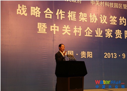 2013年9月8日,碧水源董事長文劍平作為中關(guān)村重點(diǎn)企業(yè)代表赴貴陽參加“北京-貴陽創(chuàng)新驅(qū)動(dòng)區(qū)域合作系列活動(dòng)”。此次與會(huì)的重點(diǎn)企業(yè)還包括聯(lián)想集團(tuán)、京東集團(tuán)、清華控股集團(tuán)和時(shí)代集團(tuán)等。