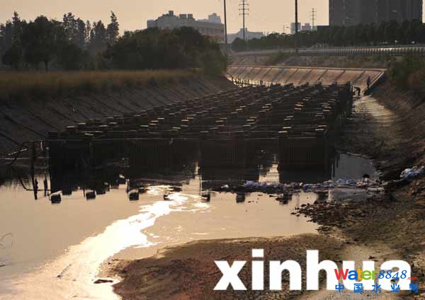 在武漢秀湖明渠的一端,排污口在排污(10月25日攝)。新華社記者 肖藝九 攝