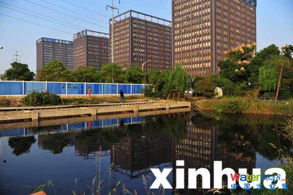 附近的污水均排至此,形成一池黑水(10月25日攝)。新華社記者 肖藝九 攝
