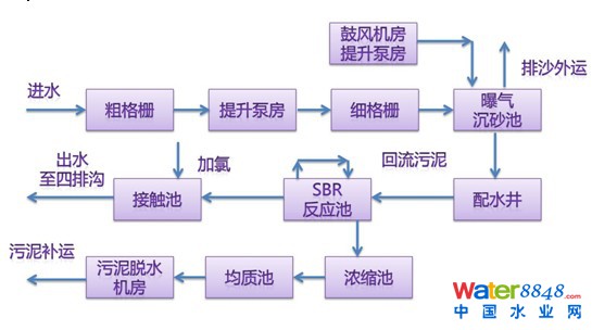 下面以典型污水廠為例,簡(jiǎn)要介紹污水處理工藝流程。該污水處理廠是被國(guó)家列入三河三湖、渤海碧海水污染治理的重點(diǎn)項(xiàng)目。日處理污水能力達(dá)到4萬(wàn)噸,污水處理后可達(dá)到《城鎮(zhèn)污水處理廠污染物排放標(biāo)準(zhǔn)》一級(jí)A標(biāo)準(zhǔn),排放水質(zhì)可直接用于農(nóng)田灌溉。初步污水處理工藝采用MSBR工藝即序批式活性污泥處理工藝;污泥處理工藝推薦采用帶式濃縮、脫水一體機(jī)濃縮脫水;消毒工藝采用紫外線消毒。污水經(jīng)處理后作為中水排入附近深化處理塘進(jìn)行自然凈化,最終全部回用。該項(xiàng)目投入運(yùn)營(yíng)后,每年可以減少近千萬(wàn)噸的污水排放量,不僅可大大改善該縣城區(qū)居民的居住環(huán)境,而且對(duì)改善該縣及周邊地區(qū)的海域水質(zhì)起到關(guān)鍵性的作用,對(duì)縣域經(jīng)濟(jì)社會(huì)的可持續(xù)發(fā)展具有重要意義。