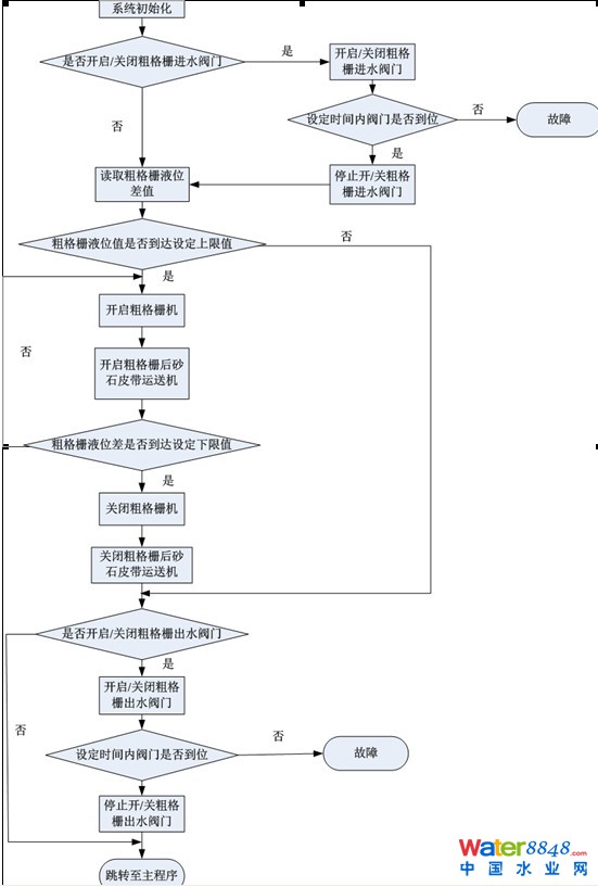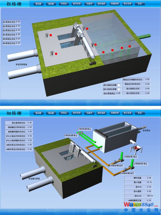 細(xì)格柵的間距比粗格柵小,為4mm,主要作用是進(jìn)一步攔截污水中的污物。需要檢測(cè)格柵水位差、流量、泵狀態(tài)等參數(shù)。