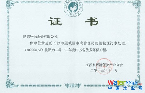 鵬鷂環(huán)保股份有限公司建設(shè)運營的長沙望城污水處理廠,經(jīng)江蘇省環(huán)保產(chǎn)業(yè)協(xié)會專家審核申報材料、實地考察,確定該工程工藝技術(shù)先進、設(shè)計科學(xué)合理、工程現(xiàn)場管理好、規(guī)章制度健全、運行記錄完善,最終評為“江蘇省優(yōu)秀環(huán)保工程”。