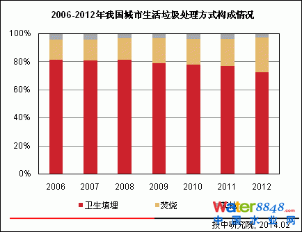 圖11 2006-2012年我國(guó)城市生活垃圾處理方式構(gòu)成情況