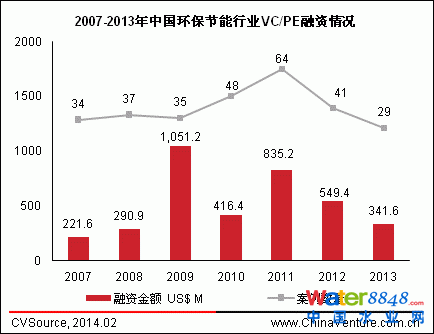圖1 2007-2013年中國(guó)環(huán)保節(jié)能行業(yè)VC/PE融資情況