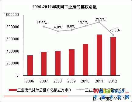 圖7 2006-2012年我國(guó)工業(yè)廢氣排放總量