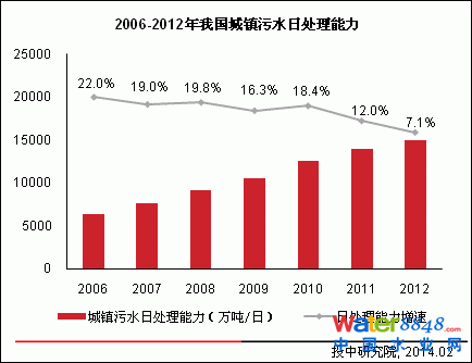 圖6 2006-2012年我國(guó)城鎮(zhèn)污水日處理能力