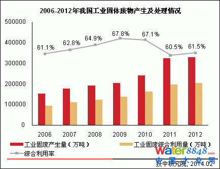 圖12 2006-2012年我國(guó)工業(yè)固體廢物產(chǎn)生及處理情況