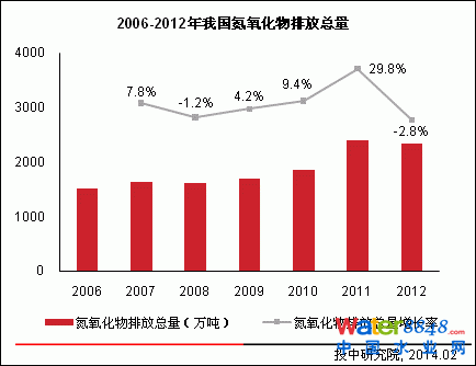 圖9 2006-2012年我國(guó)氮氧化物排放總量