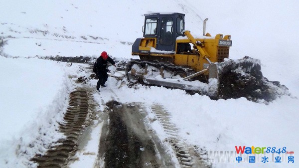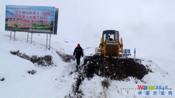 11、十八局集團(tuán)三公司花久公路HD5標(biāo)項(xiàng)目部用推土機(jī)清理道路積雪,保證道路暢通(伍振 劉鳳翥 攝)