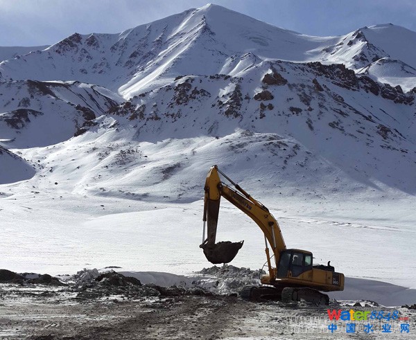 4、十八局集團(tuán)三公司花久公路HD5標(biāo)項(xiàng)目部挖機(jī)在阿尼瑪卿雪山下緊張施工(伍振 劉鳳翥 攝)