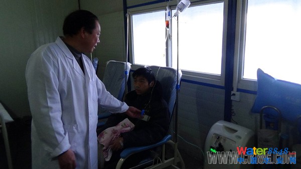 10、十八局集團(tuán)三公司花久公路HD5標(biāo)工地醫(yī)務(wù)室醫(yī)生為生病的職工及時(shí)輸液輸氧(伍振 江懷港 攝)