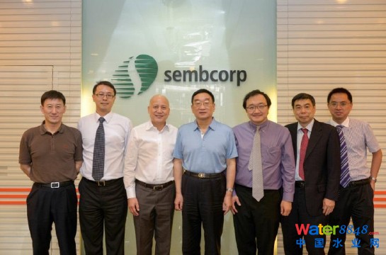 勝科工業(yè)集團(tuán)戰(zhàn)略關(guān)系高級(jí)副總裁吳兆光(前排左起第三),向中國(guó)水利部部長(zhǎng)陳雷(前排左起第二)介紹勝科在裕廊島的公用事業(yè)解決方案,包括已經(jīng)擁有超過(guò)15年優(yōu)良業(yè)績(jī)的世界級(jí)的工業(yè)供水經(jīng)驗(yàn)。