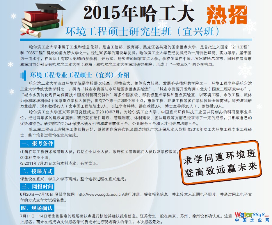 核心提示: 2015年哈工大環(huán)境工程碩士研究生班(宜興班)熱招