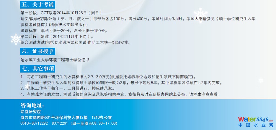 2015年哈工大環(huán)境工程碩士研究生班(宜興班)熱招