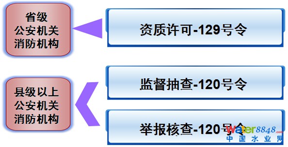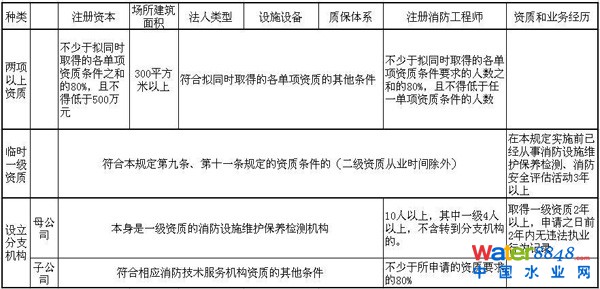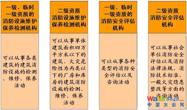 順應(yīng)國務(wù)院行政審批制度改革的要求,下放審批權(quán)限,同時兼顧審批質(zhì)量和權(quán)威性,明確資質(zhì)統(tǒng)一由省級公安機關(guān)消防機構(gòu)審批。 歡迎關(guān)注微信“給水排水”