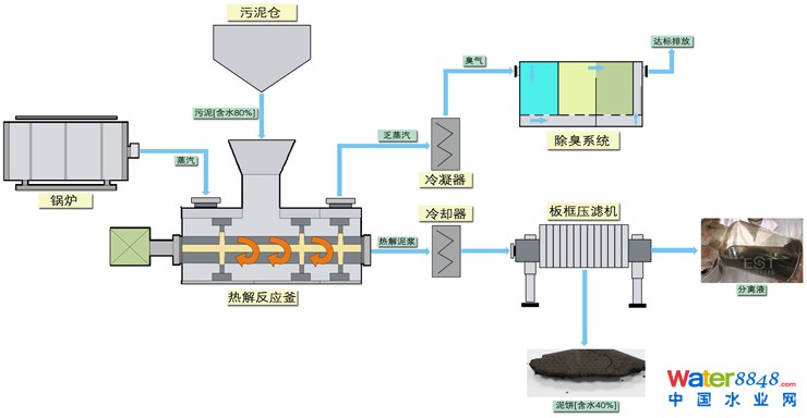 核心提示:產(chǎn)業(yè)化實用技術(shù)--RRS蒸汽熱解污泥技術(shù)一、技術(shù)核心:1、原理:Ω原理一:通過蒸汽與脫水污泥直接接觸反應(yīng),破壞污泥膠狀絮體