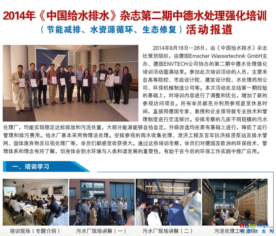2013526日,李克強(qiáng)總理訪問(wèn)德國(guó),中德雙方共同規(guī)劃了未來(lái)合作的方向和重點(diǎn),并愿意共同努力,加強(qiáng)兩國(guó)多層次、寬領(lǐng)域合作,推動(dòng)中德關(guān)系百尺竿頭更進(jìn)一步;2013622日,由《中國(guó)給水排水》雜志社(CNWW)與德國(guó)最大的Emscher 水協(xié)下屬的子公司Emscher Wassertechnik GmbH(埃姆歇水處理公司)和 ENVTECH(德國(guó)環(huán)境技術(shù)工程公司)共同主辦的第一期中德水處理強(qiáng)化培訓(xùn)活動(dòng)在中德雙方的共同努力下圓滿完成,培訓(xùn)活動(dòng)的反響遠(yuǎn)超預(yù)期(具體報(bào)道見(jiàn)網(wǎng)站www.watergasheat.com)。