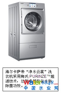 中國(guó)上海,2014年10月27日——通過(guò)與陶氏化學(xué)公司(紐交所代碼:DOW)旗下水處理及過(guò)程解決方案業(yè)務(wù)部的聯(lián)合開(kāi)發(fā),海爾集團(tuán)成功運(yùn)用陶氏超濾(UF)技術(shù)實(shí)現(xiàn)了首款卡薩帝“凈水云裳”洗衣機(jī)的商業(yè)化應(yīng)用。這款洗衣機(jī)采用了全新的陶氏PURINZETM 超濾膜進(jìn)行設(shè)計(jì)制造,省水超過(guò)30%,除菌效果更高達(dá)99%1,同時(shí)還能有效改善水質(zhì),,提升洗滌效果。