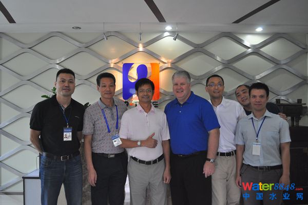 Bradley Olson及其代表團(tuán),九通水務(wù)董事長(zhǎng)、總經(jīng)理張良純協(xié)同副總經(jīng)理戴先兵、總助李欣欣等出席了此次