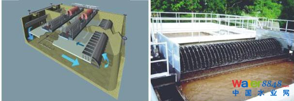 u 利用矩形及較深池體(最深可達(dá)到8.5m),以節(jié)省土建費(fèi)用及用地;