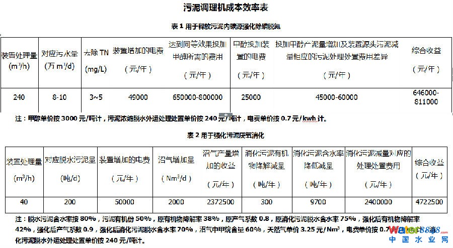 泥性狀,使后序污泥脫水更加容易,提高脫水率,同時(shí)還可減少脫水藥劑的使用量。應(yīng)用離心脫水機(jī)或帶式脫水