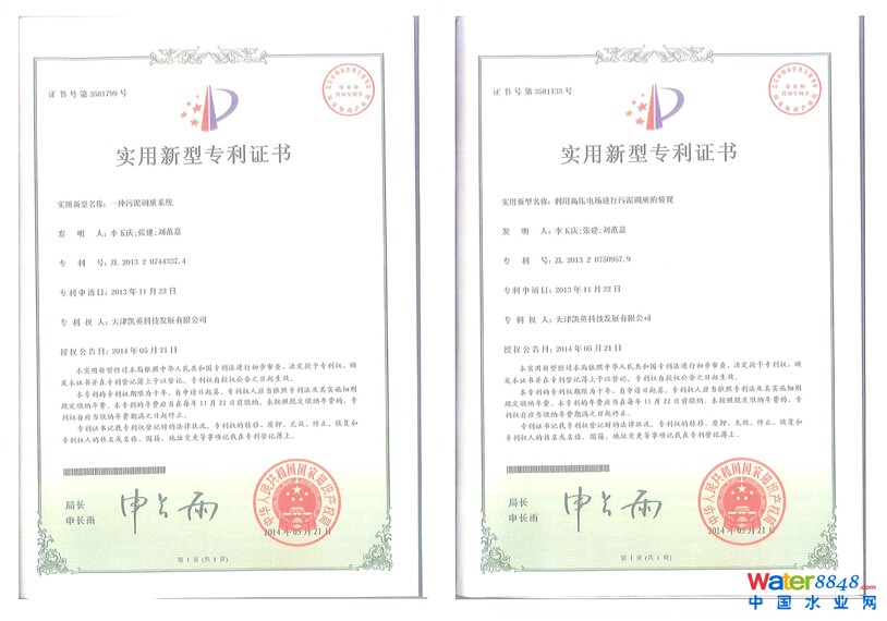 2實(shí)用新型利用高壓電場進(jìn)行污泥調(diào)質(zhì)的裝置CN201320750957.9授權(quán)