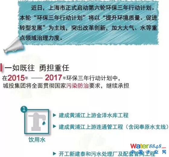近日,上海市正式啟動(dòng)第六輪環(huán)保三年行動(dòng)計(jì)劃。本輪“環(huán)保三年行動(dòng)計(jì)劃”將以“提升環(huán)境質(zhì)量、促進(jìn)轉(zhuǎn)型發(fā)展”為主線,突出改革創(chuàng)新,加大大氣、水等重點(diǎn)領(lǐng)域治理力度。與此同時(shí),上海城投集團(tuán)也公布了三年計(jì)劃重大工程,圖解如下: