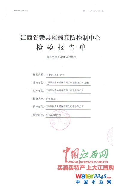 核心提示:贛縣污水處理廠被投訴污染續(xù):檢測結(jié)果顯示水質(zhì)達(dá)標(biāo)(圖)   贛縣污水處理水樣檢測報告