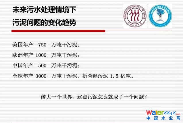 我今天跟大家交流的題目是:“污泥最終去哪里”?我們首先來看一個情況,美歐的污泥量大,但是他們已經(jīng)處理處置完畢,中國的處置量也比較大,但是我們還基本沒有處理處置,還停留在討論如何處理處置上。雖然西方已經(jīng)處理處置完畢,但現(xiàn)在也還在爭論?纯次鞣降奈勰嗵幚硖幹玫膶n}討論會,矛盾激烈程度跟我們一樣。爭論什么?爭論這點污泥最終去哪里?