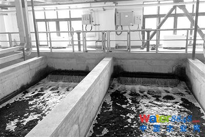 北京經(jīng)濟技術(shù)開發(fā)區(qū)污水再生處理廠濾布濾池正在處理泛黃的污水。