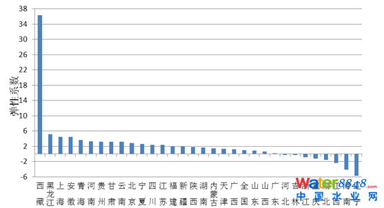 圖5-1 2013年各地區(qū)環(huán)境污染治理彈性系數(shù)