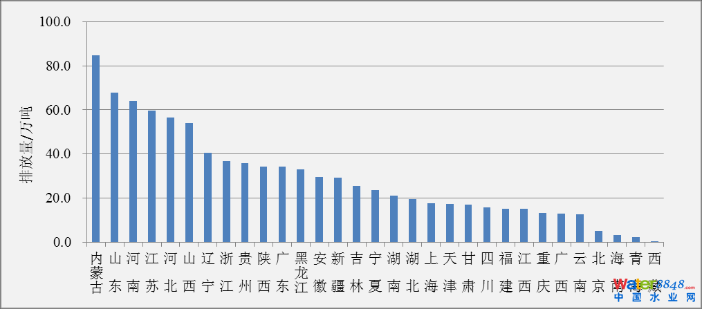 圖3-5 各地區(qū)電力、熱力生產(chǎn)和供應(yīng)業(yè)氮氧化物排放情況
