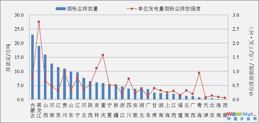 獨立火電廠煙(粉)塵排放量居前4位的省份依次為內(nèi)蒙古、黑龍江、山西和河南,其煙(粉)塵排放量占獨立火電廠排放量的38.5%。獨立火電廠單位發(fā)電量煙粉塵平均排放強度為0.5克/千瓦時,比上年提高25.0%,其中黑龍江、重慶和吉林3個省份的排放強度大于1.0克/千瓦時。