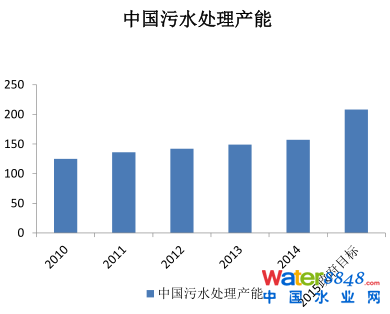 根據(jù)住建部資料,2014年底內(nèi)地有3,717座污水處理廠,污水處理能力每日1.57億立方米,較2013年新增約每日800萬立方米。