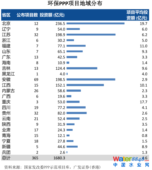 2015年5月25日發(fā)改委上線了PPP項目庫,當(dāng)中,環(huán)保類占35%,達(dá)365項,投資額約為1,700億元。
