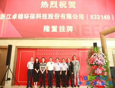 2015811日,浙江卓錦環(huán)?萍脊煞萦邢薰荆ㄗC券簡稱:卓錦環(huán)保;證券代碼:833149),成功在全國中小企業(yè)股份轉(zhuǎn)讓系統(tǒng)有限責(zé)任公司舉行掛牌儀式。