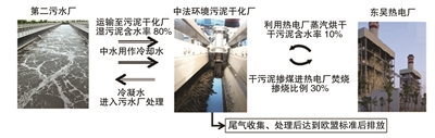 而污水處理廠產(chǎn)生的濕污泥用專用封閉車輛運(yùn)到中法環(huán)境工廠內(nèi)污泥干化系統(tǒng)進(jìn)料倉(cāng)。其主要工藝路線是利用東吳熱電廠的蒸汽將含水率80%的濕污泥干化至含水率10%-30%的干污泥;干化后的污泥與煤摻和后送入東吳熱電廠鍋爐內(nèi)焚燒,回收污泥中所含熱能;同時(shí)園區(qū)第二污水處理廠的中水和尾水將分別用作干化設(shè)備冷卻水和廠區(qū)保潔、綠化用水,實(shí)現(xiàn)資源循環(huán)利用;污泥干化中產(chǎn)生的冷凝水直接排放到鄰近的第二污水處理廠處理。