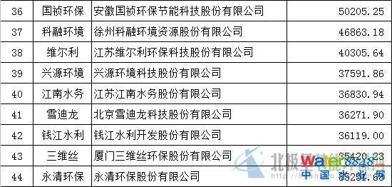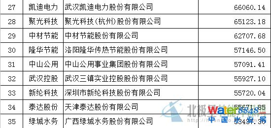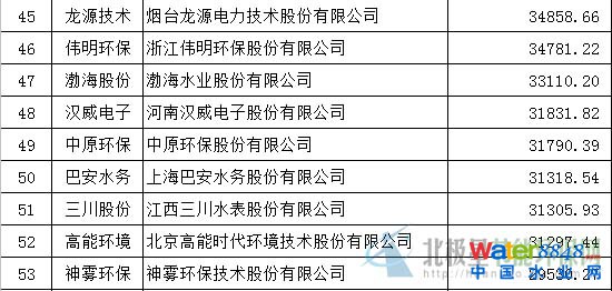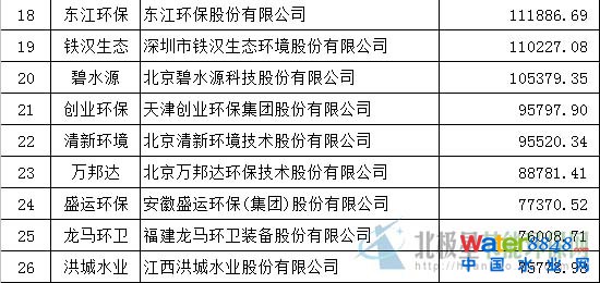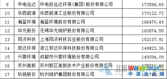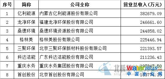 環(huán)保上市公司2015上半年營業(yè)收入排名