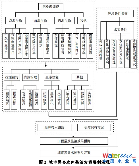 (1)明確目標(biāo),整體規(guī)劃?茖W(xué)識(shí)別黑臭水體及其形成機(jī)理與變化特征,結(jié)合污染源、水系分布和補(bǔ)水來源等情況,合理制定城市黑臭水體的整治目標(biāo)、總體方案和具體工作計(jì)劃。