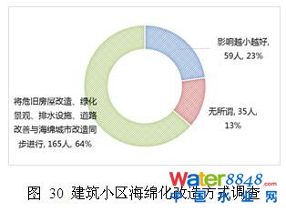 水生態(tài)方面:市民普遍接受小區(qū)內(nèi)雨水就地下滲和回用,支持海綿城市工程與危舊改、綠化、排水、道路等工程相結(jié)合,有利于將海綿城市融入地塊開發(fā)管控的各個環(huán)節(jié)。